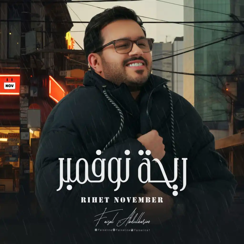 ريحة نوفمبر كلها حنين واشتياق لوعود كتير خدناها وخلفها الفراق لكن نوفمبر عمره ما بيخلف بوعده ...دايماً على معادنا بدون اي اتفاق ريحة نوفمبر كلها حنين واشتياق لوعود كتير خدناها وخلفها الفراق لكن نوفمبر عمره ما بيخلف بوعده دايماً على معادنا بدون اي اتفاق أول ما حس ان القمر ساب السما وسهران معايا واشم ريحة ذكريات واحس قلبي بيتوجع ولما بلمح صورة ليا باقية عندى من حكاية وألقى عيني دمّعت بعرف كده نوفمبر رجع بعرف كده نوفمبر رجع الليله عُمر ومش ساعات زي الساعات حتى الهوا جايب معاه كل اللي فات ما بيبتديش برد الهوا غير لو بدأ برد القلوب غير لما نغرق جوه بحر الذكريات الليله عُمر ومش ساعات زي الساعات حتى الهوا جايب معاه كل اللي فات ما بيبتديش برد الهوا غير لو بدأ برد القلوب غير لما نغرق جوه بحر الذكريات أول ما حس ان القمر ساب السما وسهران معايا واشم ريحة ذكريات واحس قلبي بيتوجع ولما بلمح صورة ليا باقية عندى من حكاية وألقى عيني دمّعت بعرف كده نوفمبر رجع بعرف كده نوفمبر رجع