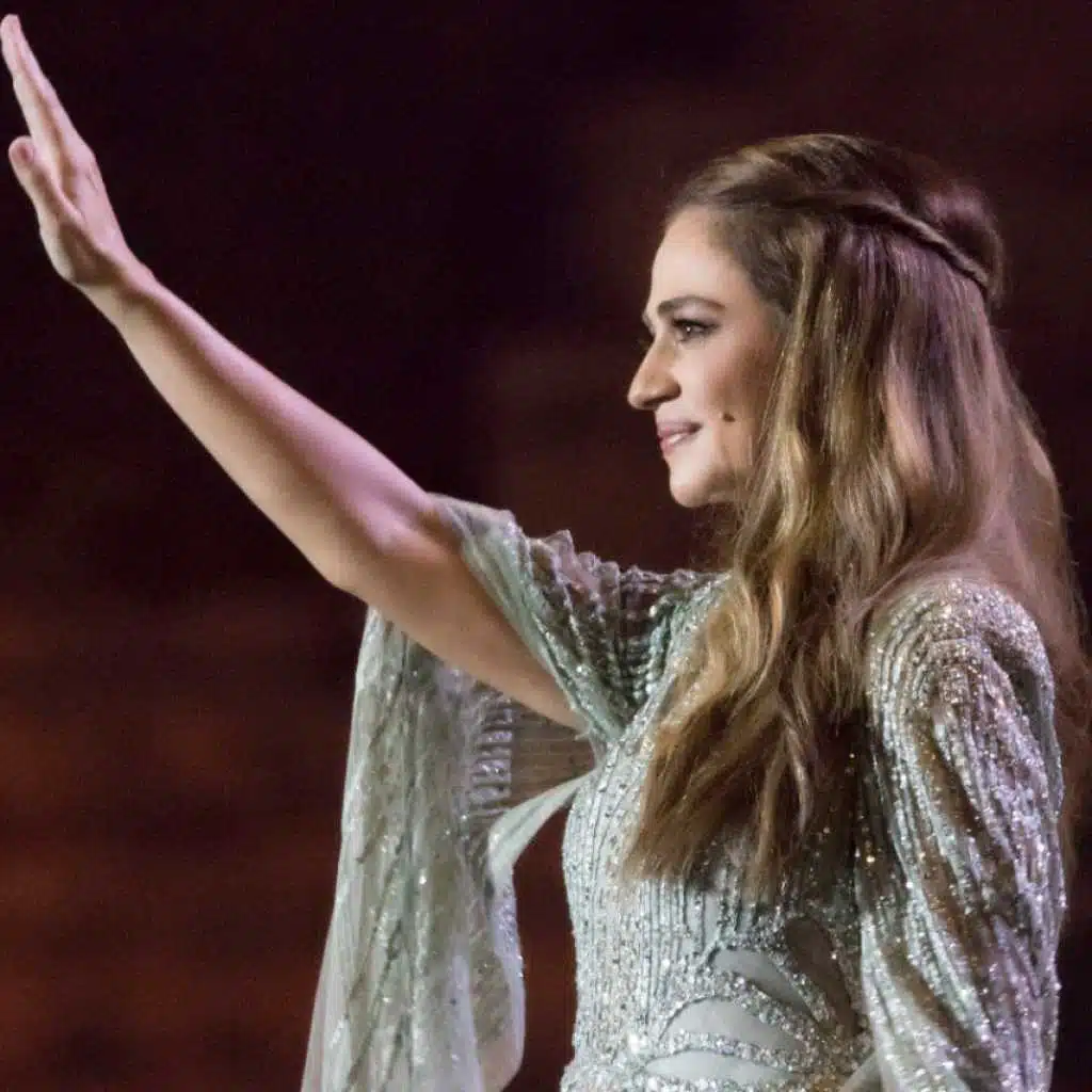 راجعة إلكُن بعد طول سنين، راجعة إلكُن و بقلبي حنين، مِنكُن أنا، معكُن أنا ...أنا من أرض لإلها انحنى جبين الدّني، و تعطّرت بِدَم كلّ الخالدين يا أرض أنا صوتي اسمَعي أنا حاملة قلبي معي، من عتم هالليل اطلَعي، فجر الحقيقة طَلّ. نار الظّلم رح تنطفي، يا حزن بيكَفّي اختفي! يا جفن ما بعمرو غِفي، سهران حامي الكَلّ! جنون الكفر يالّلي مَرَق بِنار ثورتنا احتَرَق، عَوجوهكُن عرس الدّني و فرحة جديدة ملَوّنة فيها جمال الوَرد، و عطر زهر الياسمين.... مِنكُن أنا، معكُن أنا أنا من أرض لإلها انحنى جبين الدّني، و تعطّرت بِدَم كلّ الخالدين