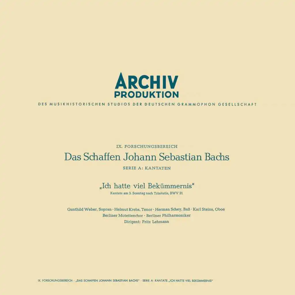 J.S. Bach: Cantata, BWV 21 "Ich hatte viel Bekümmernis" / Erster Teil - Part 1: 3. Arie: Seufzer, Tränen, Kummer, Not