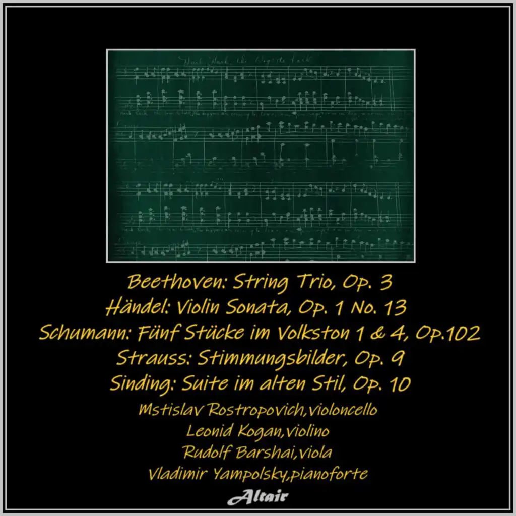 More from "Beethoven: String Trio, OP. 3 - Händel: Violin Sonata, OP. 1 NO. 13 - Schumann: Fünf Stücke im Volkston 1 & 4, OP.102 - Strauss: Stimmungsbilder, OP. 9 - Sinding: Suite im alten Stil, OP. 10 (Live)" album